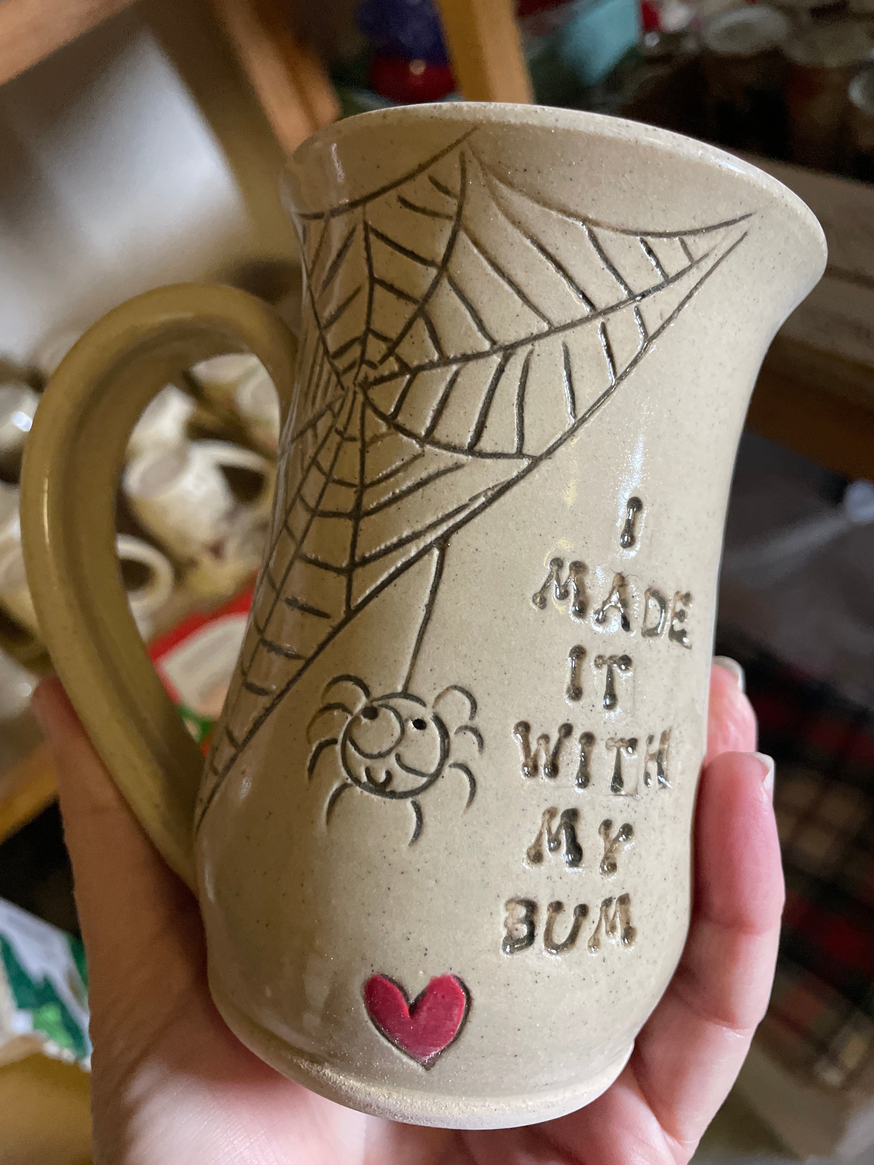 Spider & spiderweb. 5” handcarved mug.